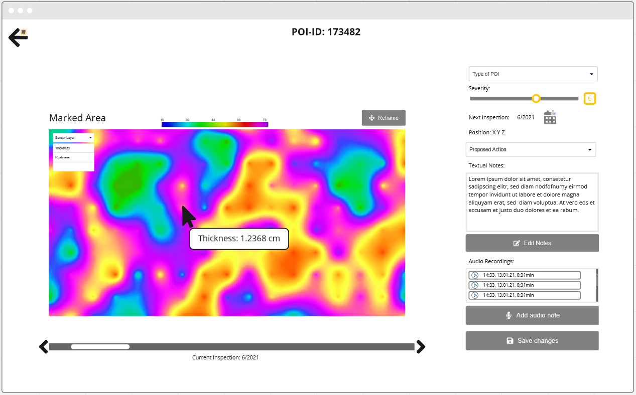 ๐ ๏ธ The primary focus of this week was to further the integration between the crawler and the user interface while leveraging key HCI/HRI elements. To this end, the CNRS and RWTH successfully integrated a mesh of the inspection object as well as the real-time crawler localisation and thickness measurements of the inspection object into the user interface.