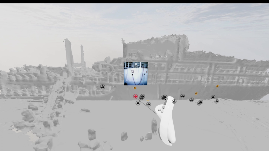 Lastly, we tested the integration of the VR system with the crawler using the ship mesh. CNRS established a network that facilitated the real-time visualization of the crawler’s data on a VR system. This VR system not only allowed for data visualization but also enabled us to control and send missions to the crawler system.