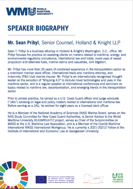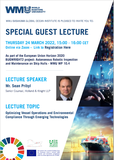 The special guest lecture from USA, expert on transport autonomy, was Mr. Sean Pribyl, Senior Counsel at Holland & Knight LLP. The title of his presentation was “Optimizing Vessel Operations and Environmental Compliance through Emerging Technologies”.